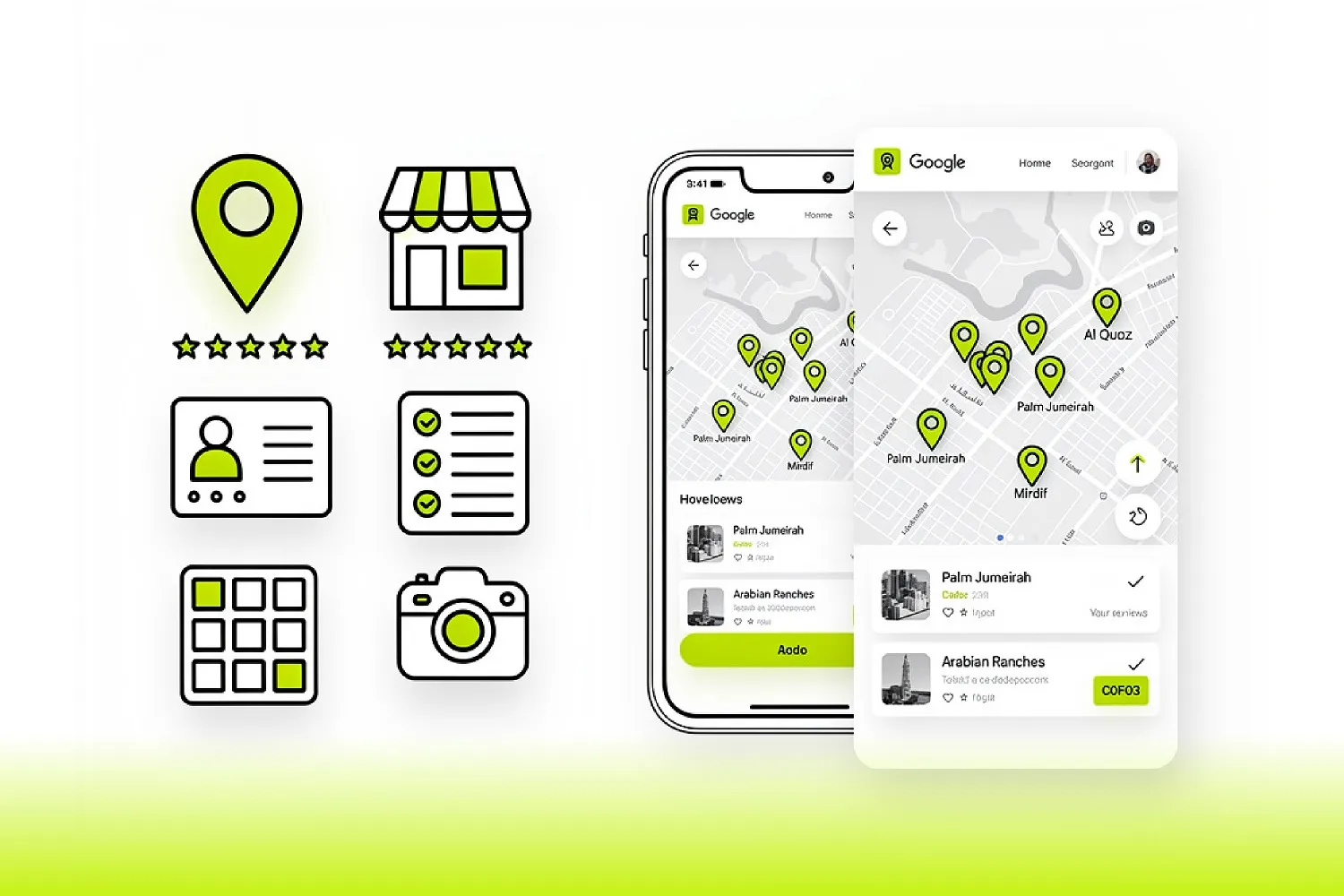 We optimize categories, descriptions, keywords, images, and geo-tagged elements to improve visibility in locations like Al Quoz, Palm Jumeirah, Arabian Ranches, and Mirdif.